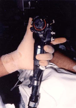 If fluoroscopy is available, the overtube (external splinting device) is placed over the colonoscope before initiating the examination.