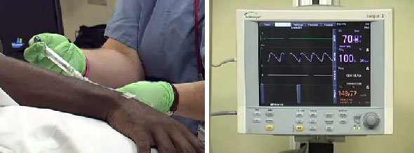 An intravenous line is inserted, fluids started and pre-procedure antibiotics administered if indicated. While the use of pulse oximetry and intermittent monitoring of blood pressure as well as electrocardiography (if clinically indicated) have now become standard procedures, it is important for the assistant as well as the endoscopist to be aware of any changes in the patient's level of awareness, respiration and abdominal distention.