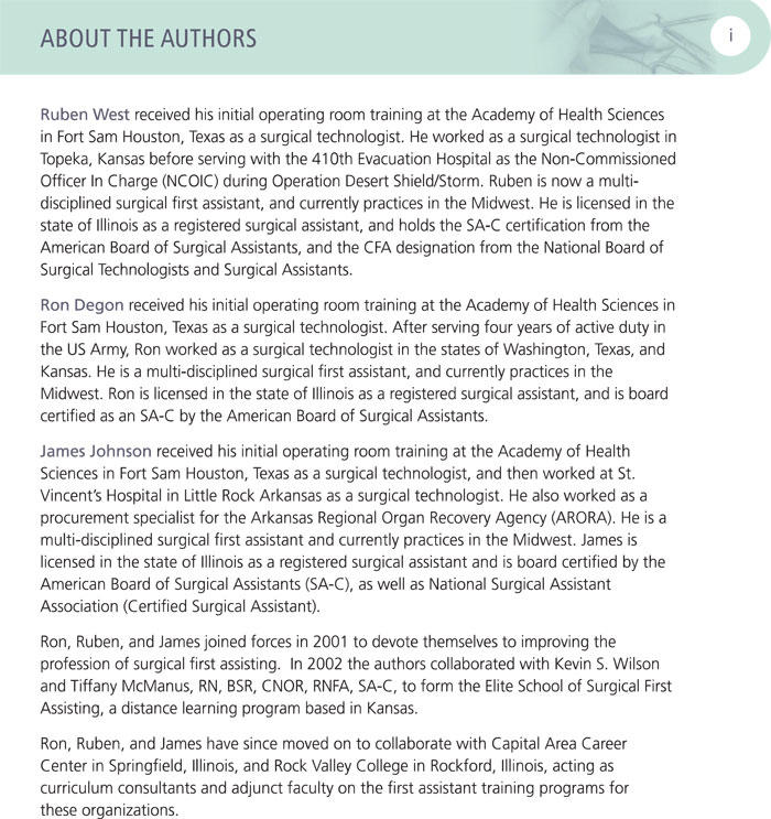 A complete guide to the role of surgical first assistant, this book covers the principles of assisting and teaches the fundamentals of the position.